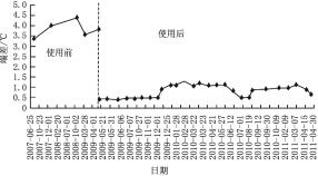 圖3為某城市綜合體使用冷凝器膠球自動在線清洗裝置前后的端差變化。