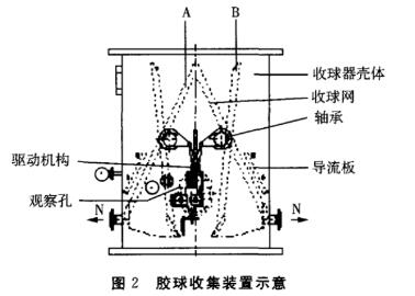 水冷式冷凝器膠球在線自動(dòng)清洗裝置(見圖1)工作原理為,通過清洗泵將膠球送人列管式冷凝器管程中,循環(huán)水壓力大約在0. 4MPa,清洗膠球依靠循環(huán)水壓力隨著循環(huán)水在冷凝器管內(nèi)流動(dòng),通過膠球與冷凝器管壁間的相互摩擦來清洗掉冷凝器管壁上的沉積物。在冷凝器出口端利用膠球收球器回收膠球,膠球的回收是通過收集裝置的驅(qū)動(dòng)機(jī)構(gòu)來實(shí)現(xiàn)的(見圖2),利用驅(qū)動(dòng)機(jī)構(gòu)帶動(dòng)循環(huán)水管道內(nèi)部收球網(wǎng)形狀的改變,形成正“八”字或者倒“八”字形,以達(dá)到收集膠球的目的。然后,再將回收的膠球送至清洗泵,由清洗泵將膠球再次送至循環(huán)水人口處,這樣就形成一個(gè)清洗循環(huán)。我公司采用特殊的清洗泵來實(shí)現(xiàn)膠球在線清洗,由于循環(huán)過程是自動(dòng)的、毋需停車,時(shí)間間隔短,沉積物在形成初期就被擦掉,使管壁永保潔凈,始終保持冷凝器的換熱效率處于佳狀態(tài),克服由于污垢的產(chǎn)生而引起冷凝器換熱效率的下降,從而降低蒸汽消耗,提高汽輪機(jī)的工作效率。