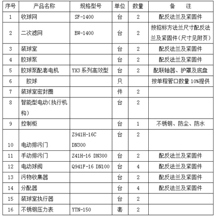 6.1每臺(tái)機(jī)組配1套膠球清洗裝置,1套膠球清洗裝置主要包含以下供貨項(xiàng)目: