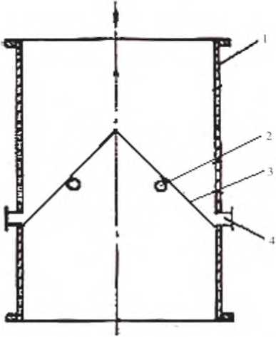 筒壁吻合處間隙大于5mm,這種設計在運行過程中不僅形成比較大的水阻.而且極易產(chǎn)生渦流,使膠球不能順利進入收球口,當數(shù)量增多時,容易造成膠球堵塞或漏入循環(huán)水系統(tǒng)中(熱電中心的各循環(huán)冷卻水塔出水口常發(fā)現(xiàn)大量膠球)熱電生產(chǎn)中心曾將2機收球網(wǎng)進行過試改造,將收球網(wǎng)改成“V”型,如圖3所示,但改造完成后,膠球清洗裝置投入運行.發(fā)現(xiàn)有大址膠球卡在兩個收球網(wǎng)底部接觸的地方,無法回到收球室,其收球率依然偏低,只有30%左右,改造未達到預期目的